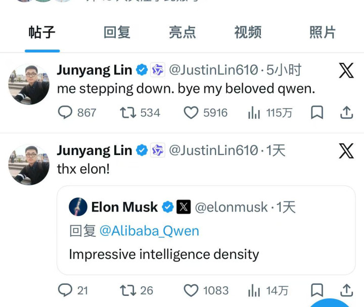 3月4日凌晨,千问核心负责人林俊旸在X发文:mesteppingdown.byemybelovedqwen.(我卸任了。再见了,我亲爱的千问。)